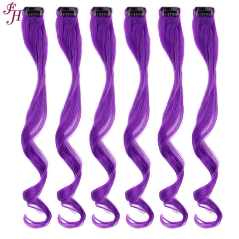 FH wholesale purple colored synthetic hair one set clip in hair extensions