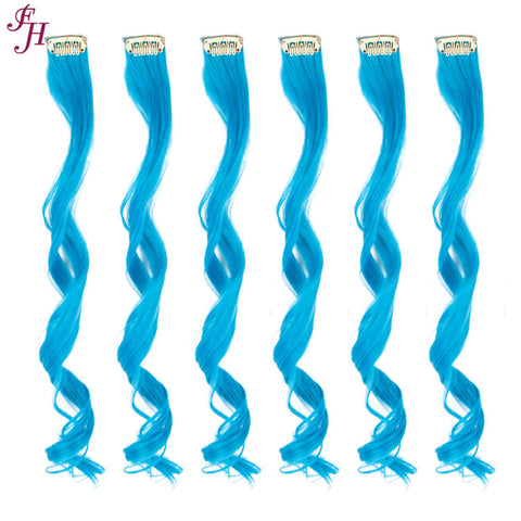 FH sky blue wavy clip in hair extensions 6 pcs one set synthetic hair extensions