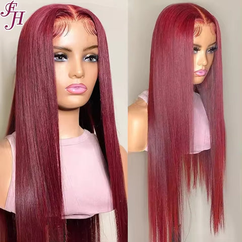 FH red 99J straight 13x4 lace frontal real human hair wig