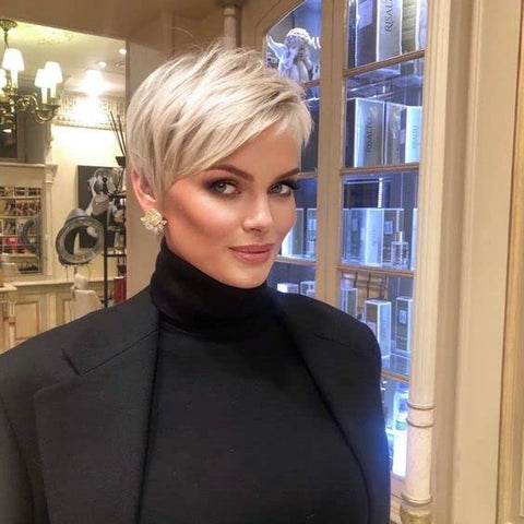 yms✨2PCS 50% OFF✨P13343 Short Blonde Wigs with Bangs Pixie Layered Short Pixie Cut Wigs for White Women Synthetic Hair