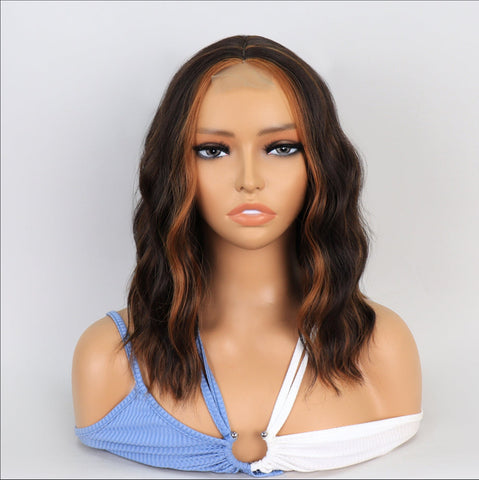 no5✨2PCS 50% OFF✨ FH P14076 dark highlight lace closure short wavy synthetic wig