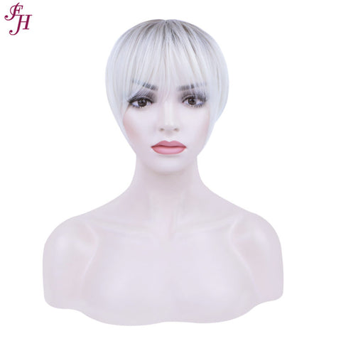 FH high quality human wig fashion short blond brown synthetic hair wig