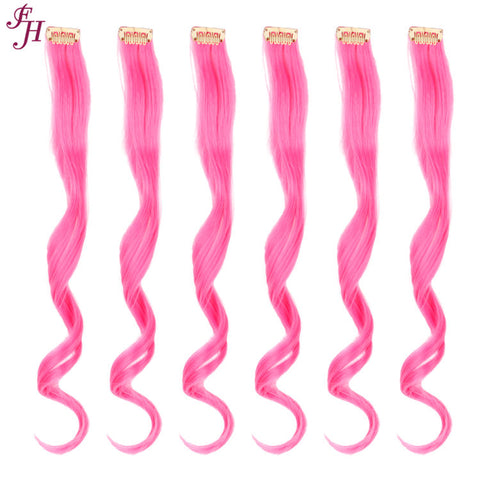 FH fiber hair clip in hair extensions hot pink synthetic 6 pcs one set for sale