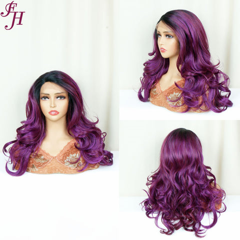 FH P13834 T part lace closure black&purple synthetic hair wig