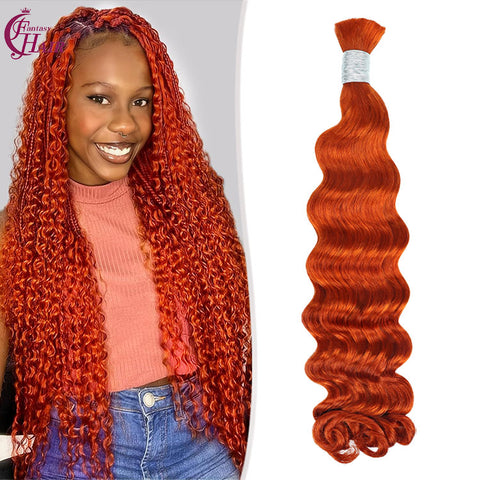 FH hair bundle no weft Deep Wave Braiding Hair Bulk #350 Copper Red - 100% Human Hair for Boho Braids