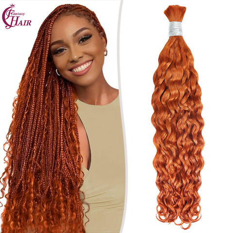 FH hair bundle no weft Water Wave Bulk Human Hair #350 Copper Red - Premium Braiding Hair for Styling