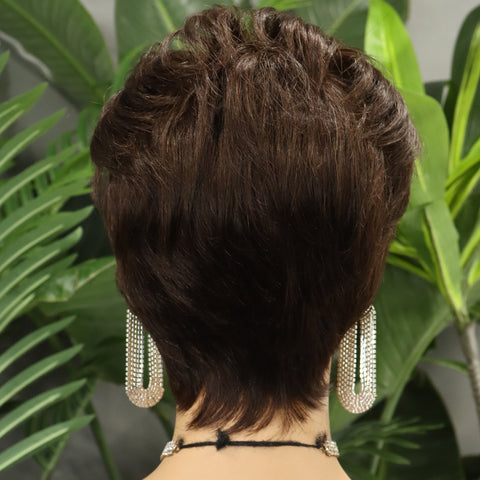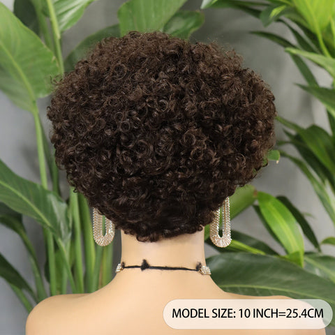 FH 100% human hair wig 8 inches pixie wig straight machine made wig short curly wig
