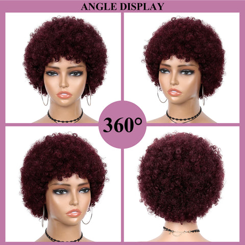 FH 100% human hair wig 8 inches machine made wig short curly wig various colors