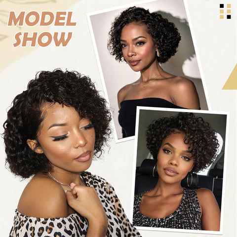 FH 100% human hair wig 8 inches slightly curly machine made wig short curly wig