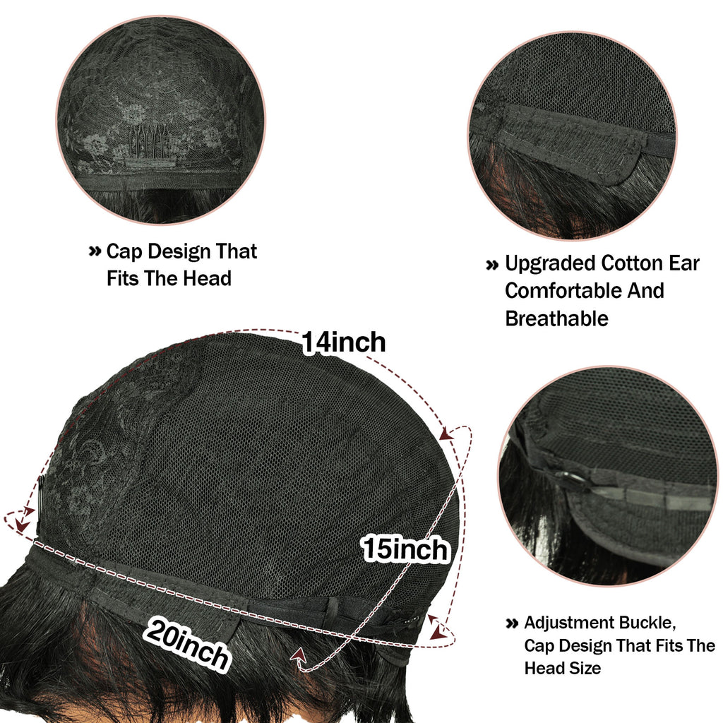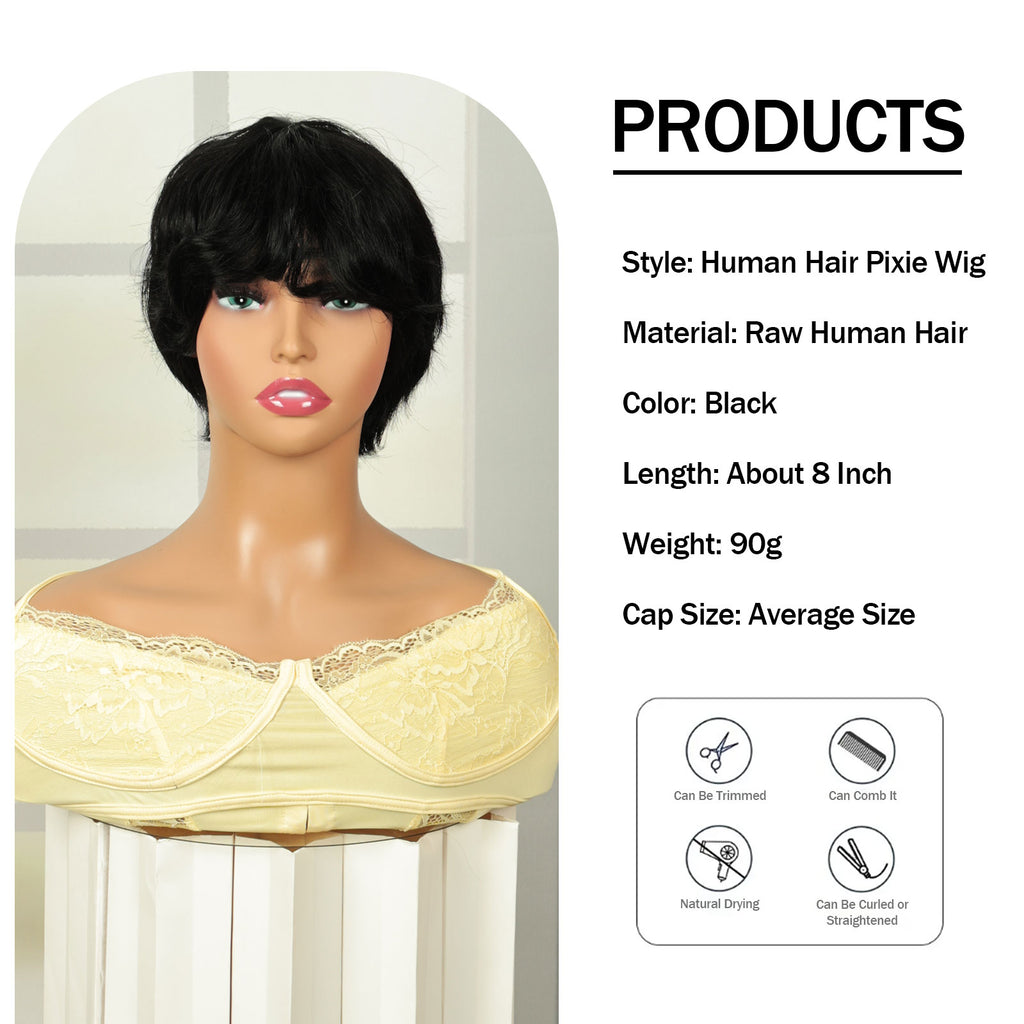 Q10269 Short Pixie Cut Wigs for Black Women Human Hair None Lace Layered Black Short hair Pixie Cut Wig with Bangs Natural Black