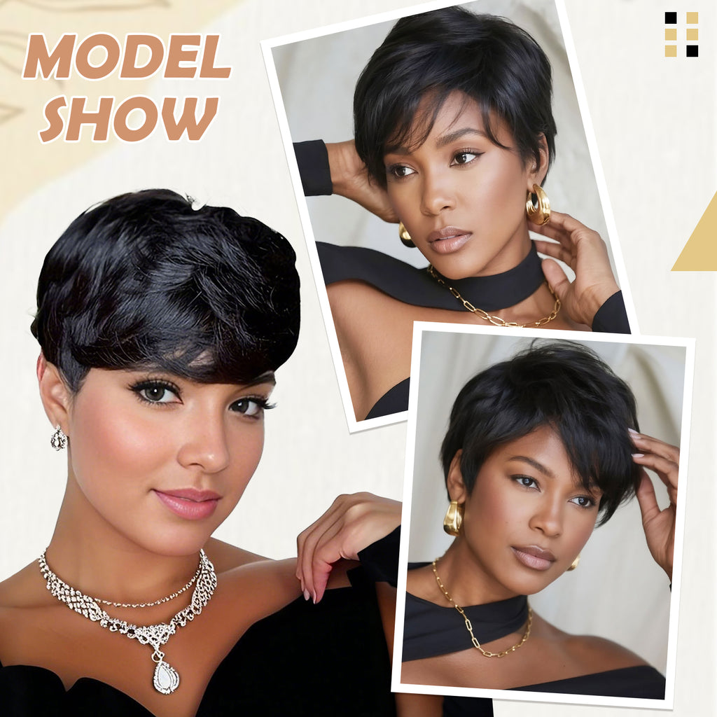FH 100% human hair wig 8 inches machine made wig short curly wig