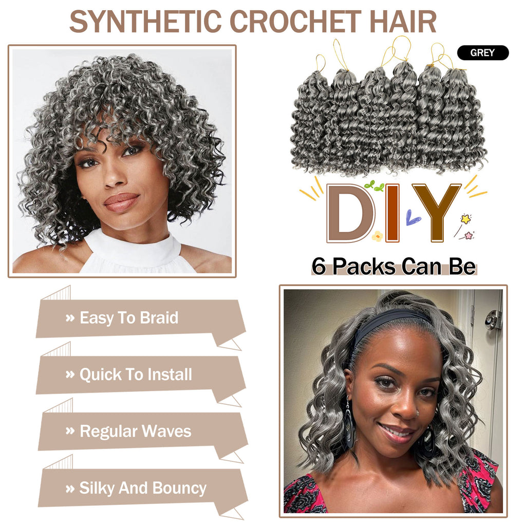 FH P14183 synthetic curly hair 8 inch grey crochet braid hair-6 bags