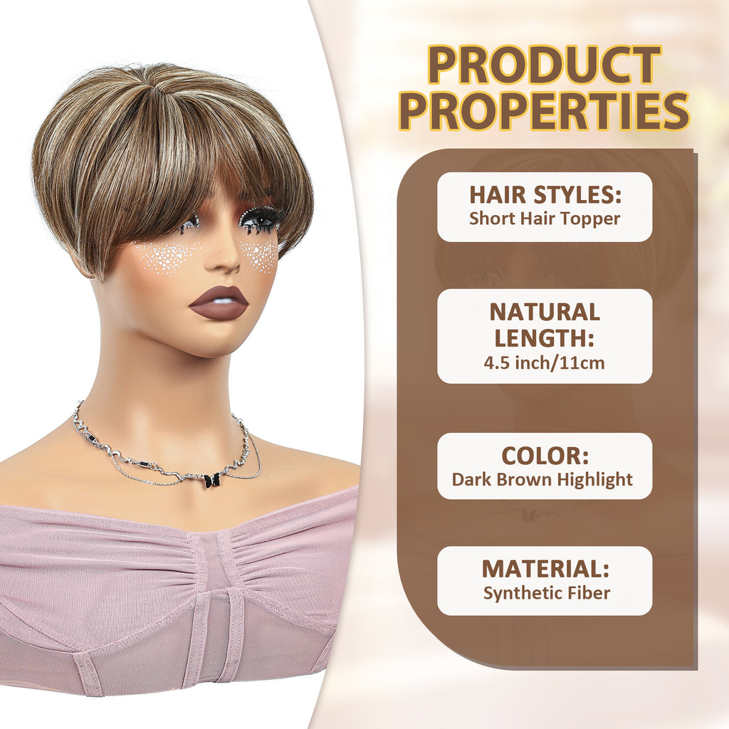 6.5x6inch Large Base Hair Toppers for Women:hair lengh is 4.5 inch,from head top to down length is 7 inch,A large sized artificial simulated scalp.Breathable Cap Design provide a thinner cap construction, Oval Base Shape fit well and stable. The exquisite hair addition is ideal for adding volume on top of head.
