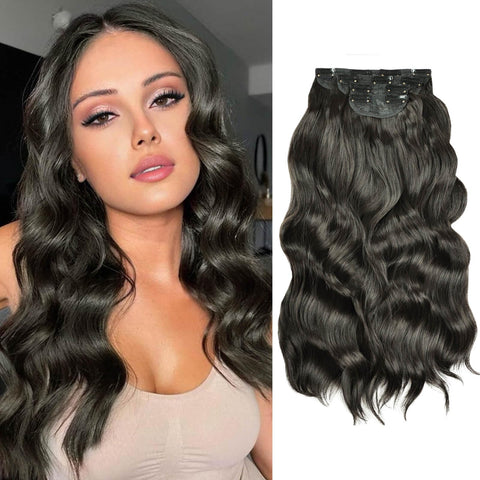 FH curly synthetic hair extensions clip in 4 pcs one set