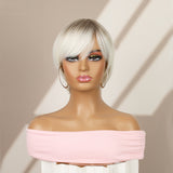 FH Short Platinum Blonde Pixie Cut Wig Fluffy Synthetic Wig 8 inches P13343