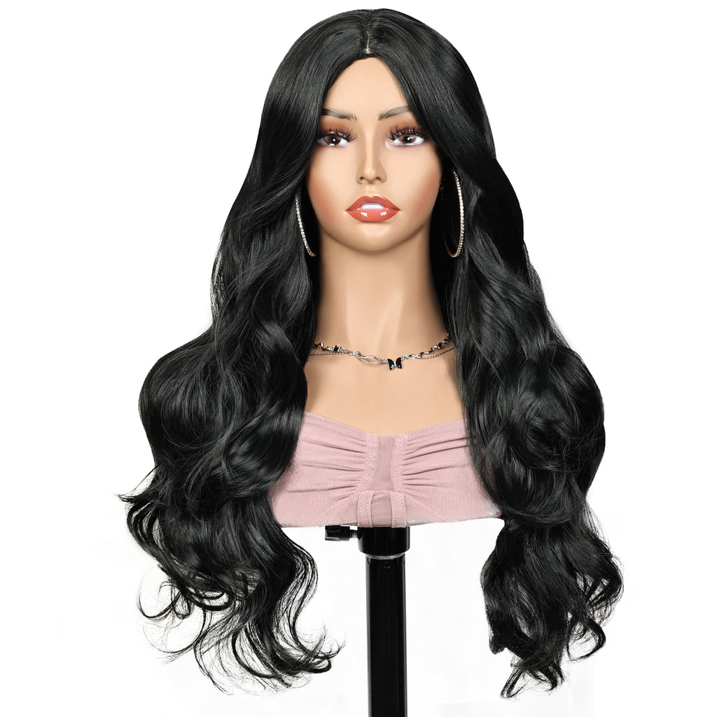 P14934K Black Long Wavy Wigs for Women Synthetic Hair