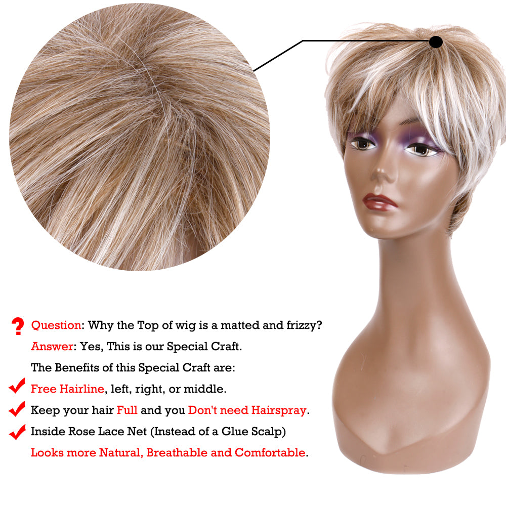 P12405 Pixie Layered Short Blonde Wigs for White Women Black Women Synthetic Hair (Blonde Mixed Brown)