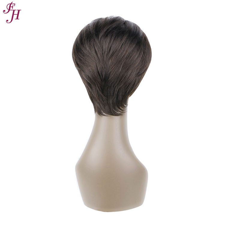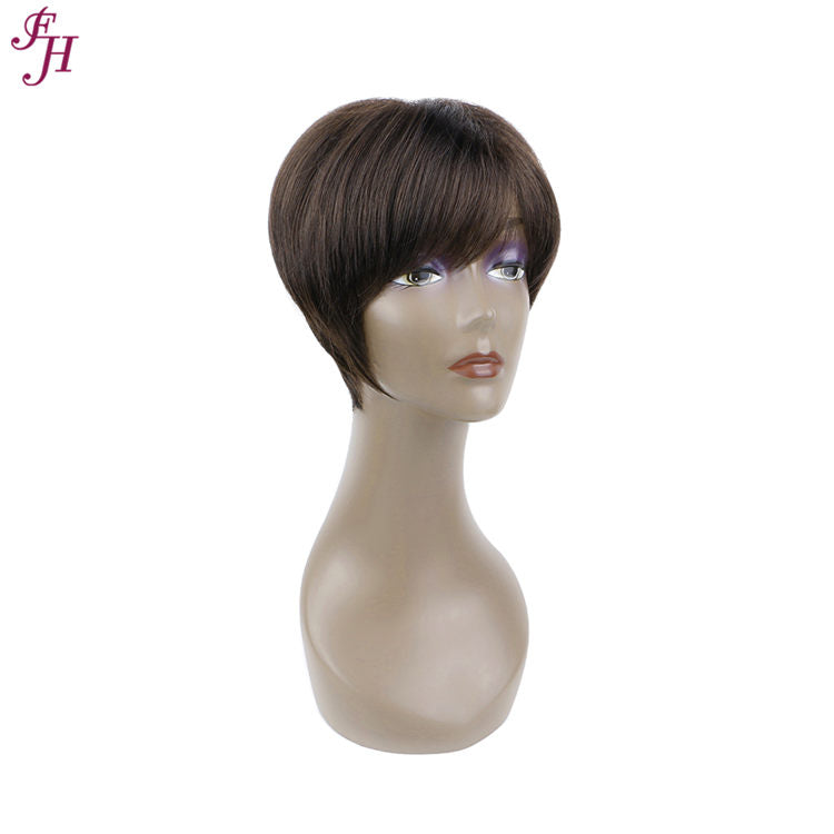 FH factory price human hair wig natural black short synthetic hair wig