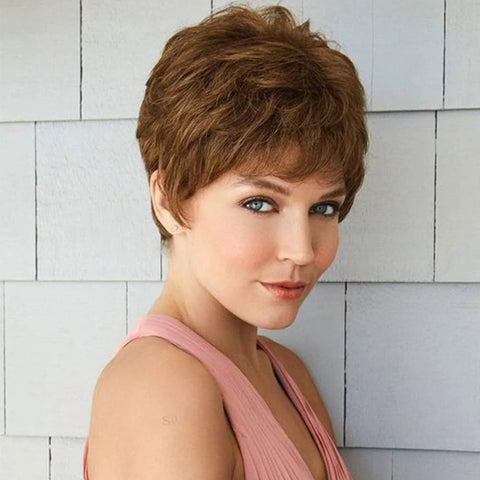 yms✨2PCS 50% OFF✨P13548 Pixie Layered Short Chestnut Brown Wig Natural Curl Synthetic Hair Wigs for Women
