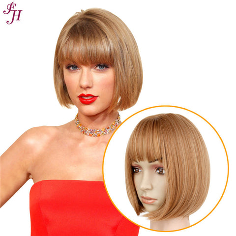 no43 ✨2PCS 50% OFF✨ FH P12454 dark blonde short bob wig machine made synthetic wig