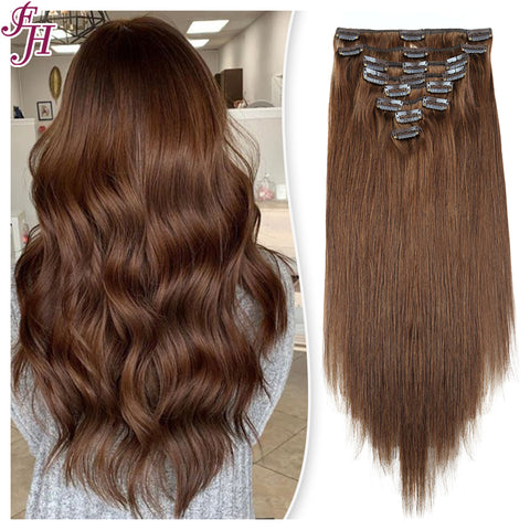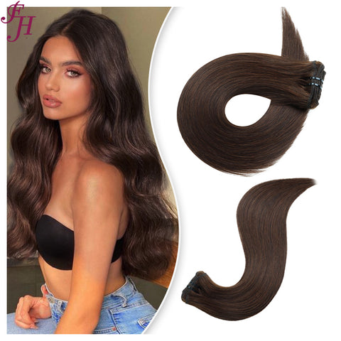 FH chocolate brown #4 Russian human hair clip in hair extension