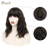 Creamily 14" Bob Wig for Black Women Synthetic Curly Wig Black Water Wave Wigs Short Wigs with Bangs Wefted Wig Caps