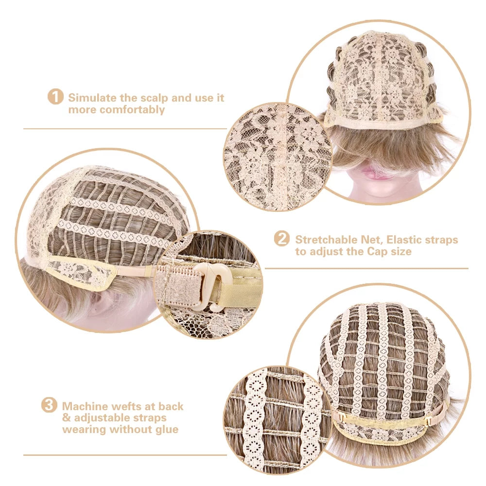 • Heat-resistant synthetic fibers? Short Blonde Wig with Bangs realistic and natural, soft touch, Highly breathable.