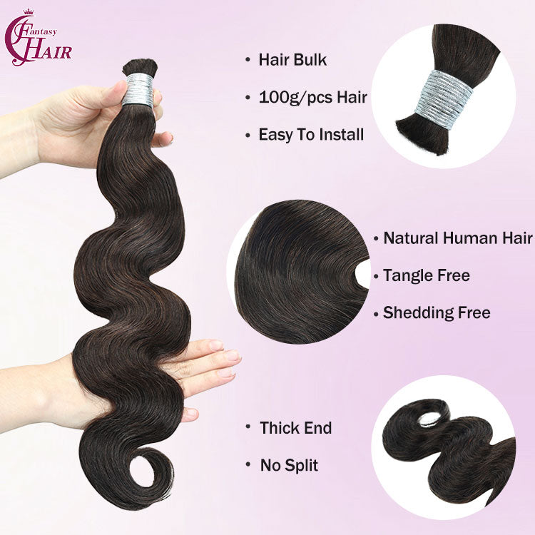 FH 1 bundle 100g/pack body wave human hair bulk shade 2 (Light Brown) boho braids bulk hair 12-24 inches.