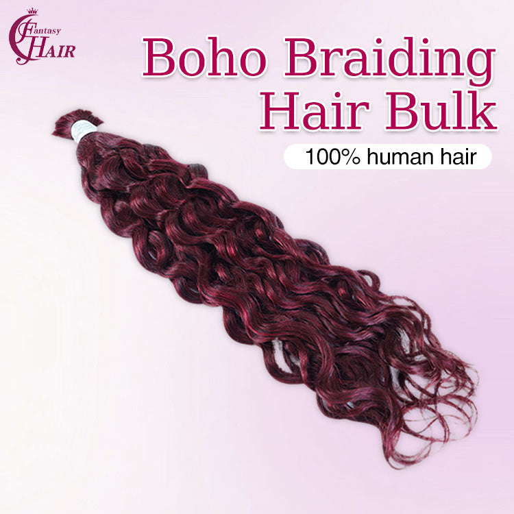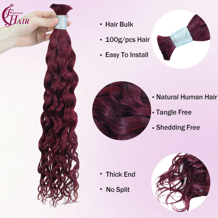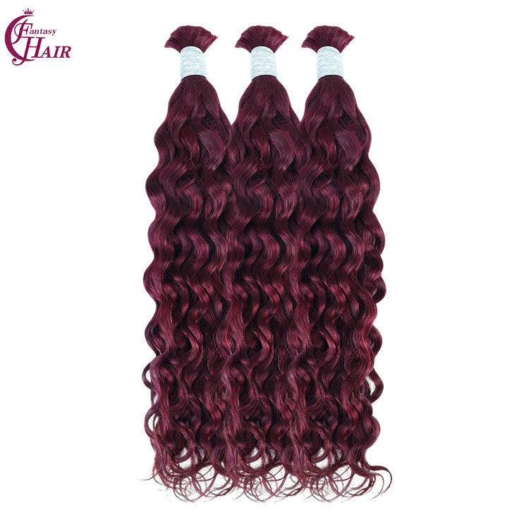 FH hair bundle no weft Water Wave Bulk Human Hair #99J Burgundy - Premium Braiding Hair for Styling