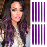 FH purple straight hair colorful synthetic hair 6 pcs one set clip in hair extensions