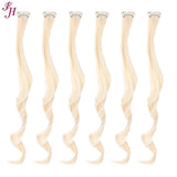 FH best price 6 pcs one set clip in hair extensions 613 blonde synthetic hair