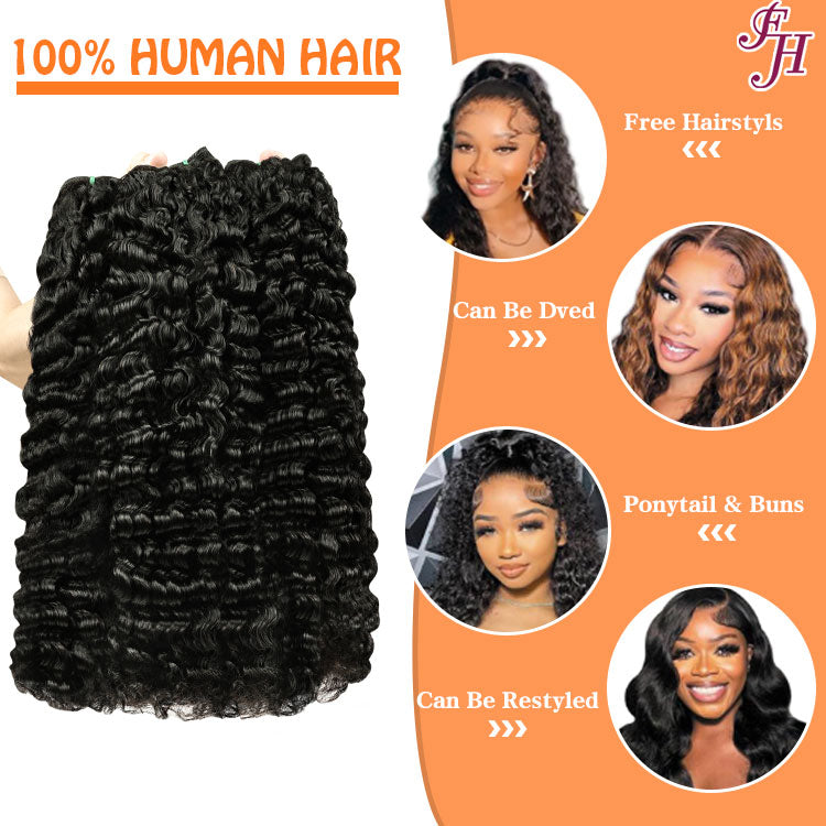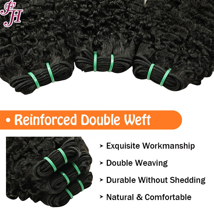 FH Natural Black Burmese Curly Human Hair Bundles Weave Hair 100g/pcs