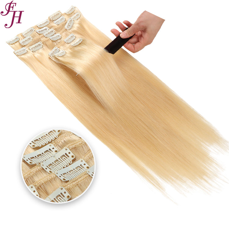 FH platinum blonde #60 Russian human hair clip in hair extension