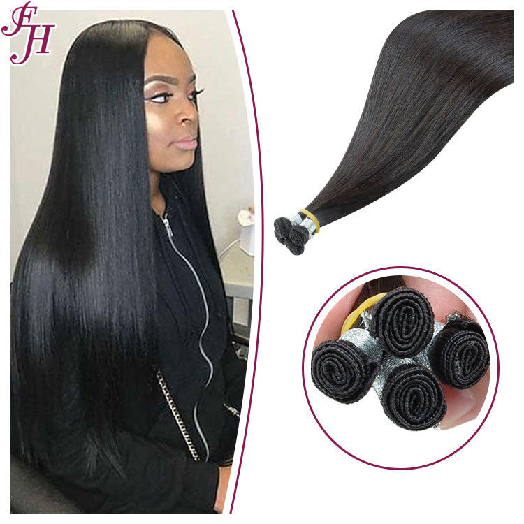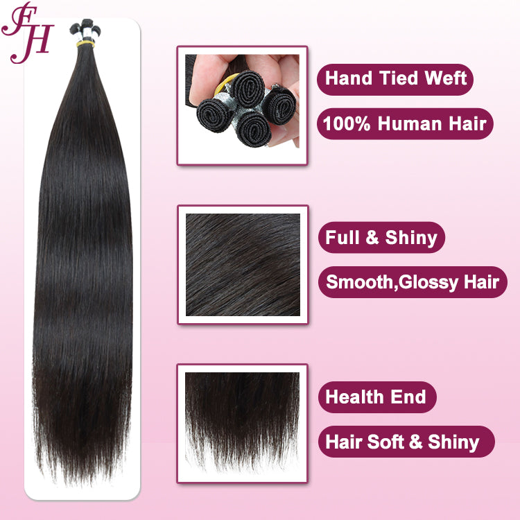 FH natural black hand-tied weft 4 pieces human hair extensions in stock