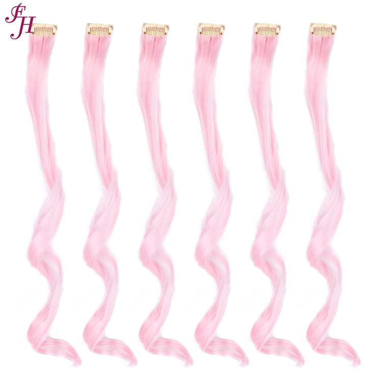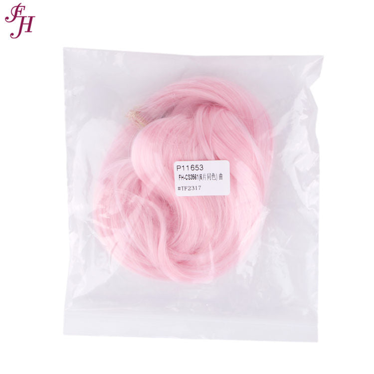 FH synthetic hair pale pink hair 6 pcs wavy hair clip in hair extensions