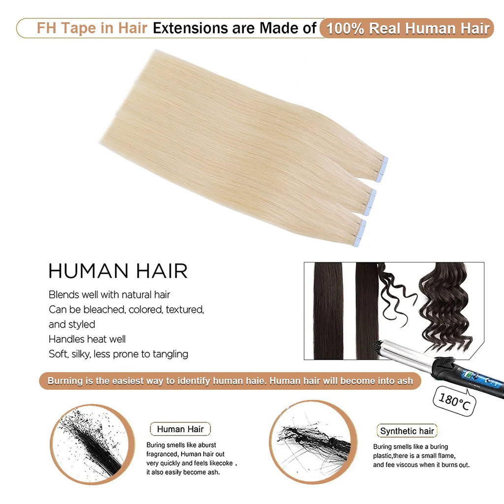 FH virgin raw human hair extensions 613 blonde tape hair extension