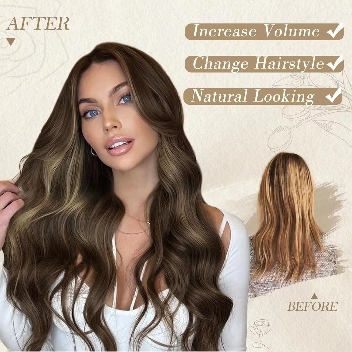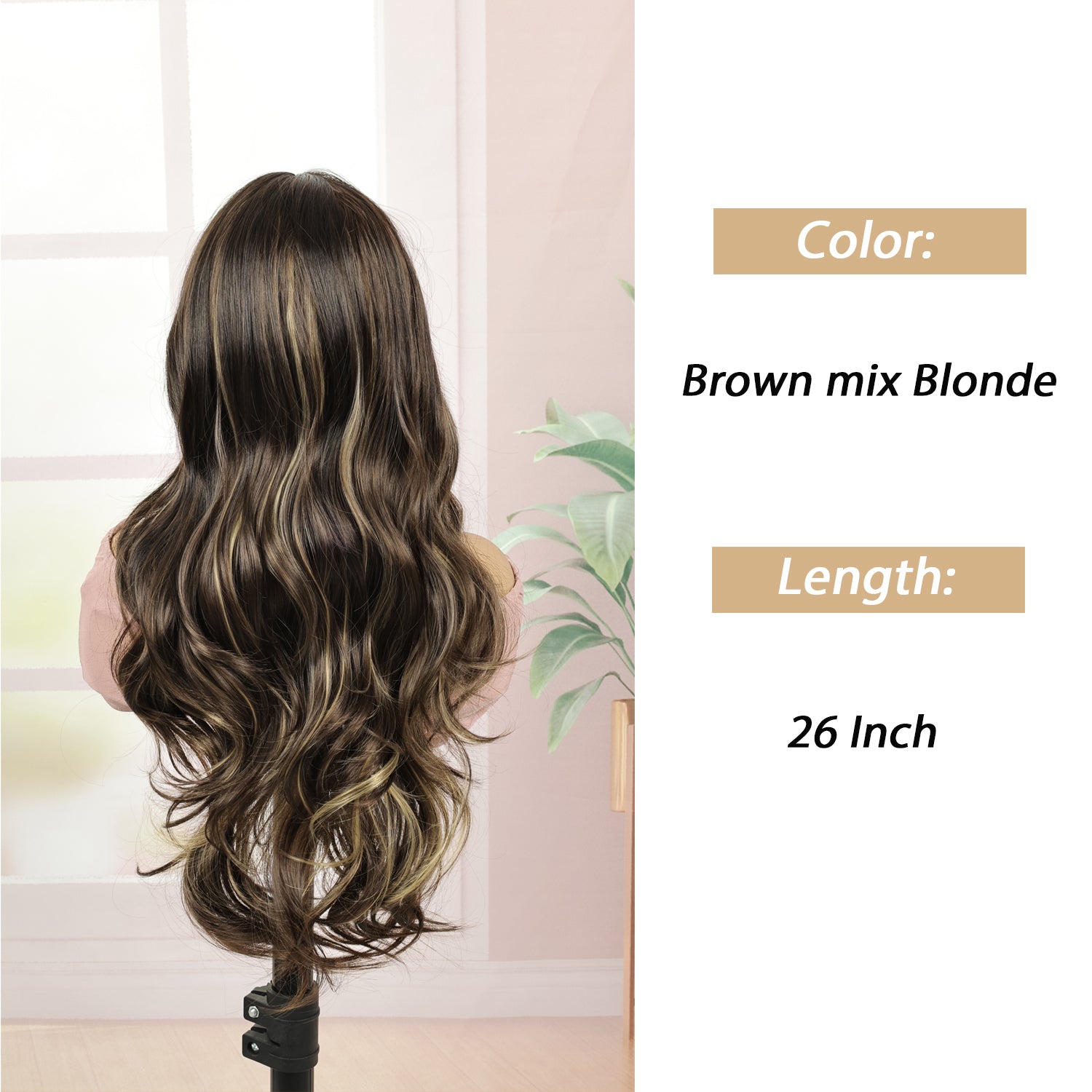 Lakihair 24inch Long Brown Wigs for Women Water Wave Wig Highlight Blonde Wig
