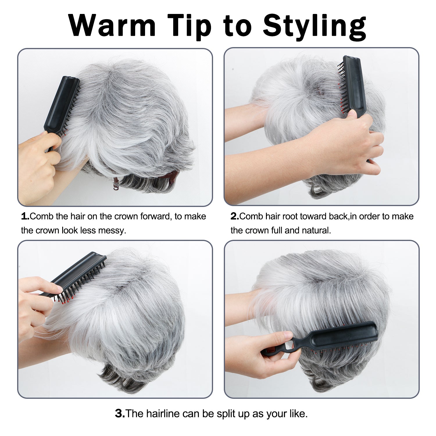 - Styling:Just need wide comb to comb hair roots toward back,and hand grasp texture,you will get a new look.