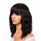 • Name : Phocas 12" Short Bob Wigs for Black Women Water Wavy Wig Synthetic Black Wig with Bangs